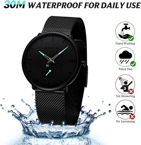 • WATERPROOF FOR DAILY USE: waterproof (3ATM), HANDWASH, SHOWER, NO PROBLEM, Perfect for all kind of business, casual, indoor activities or daily use.