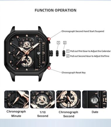 Carlson Raulen Watches for Men Waterproof Luxury Fashion Rectangle Quartz Sports Chronograph Watch